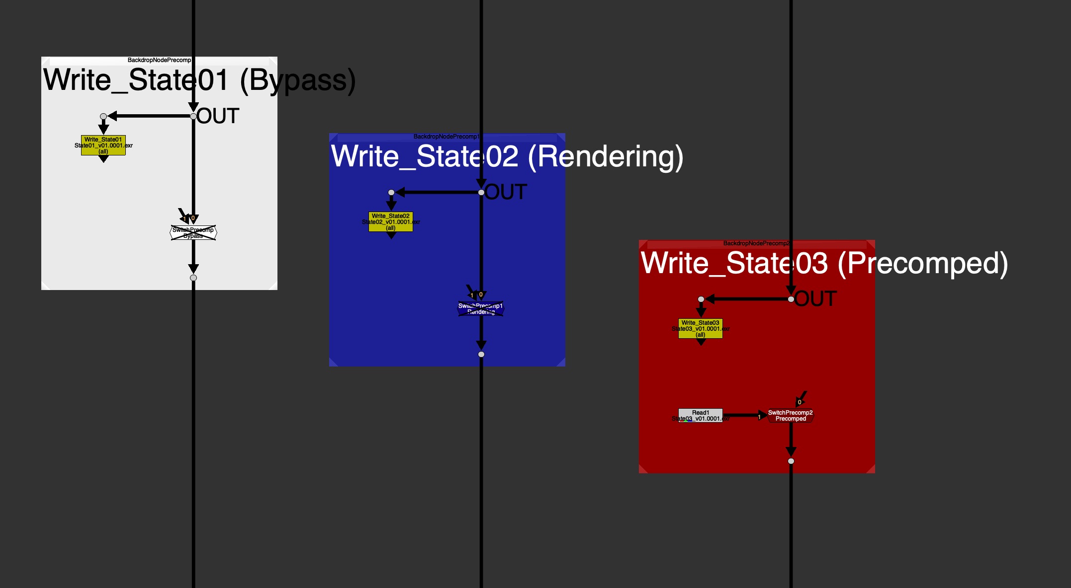 There is often a need to clone or expression link grades and color correction changes across different parts of the setup in order to affect all the lights at once, or all the material AOVs at once. Creating a clone or expression hellscape.