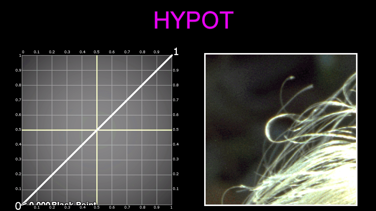 With a little bit of fiddling around. We can see the top of the toe operation is exactly double the value of the blackpoint… We need to start by re-creating a screen, which is basically an inverted luminance key, used as a mask, that is plusing out blackpoint. From there we can create a screen operation that instead of end at 0-1, ends at 0 to 2x the balckpoint value, and you can see in the example above we have a mini triangle encompassing our toe operation. There it’s a matter of using a gamma of 0.5 on the luma-key mask and we have our toe.