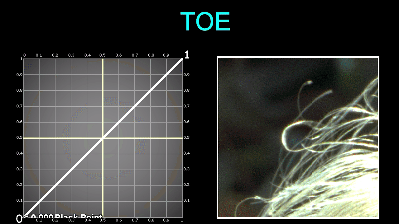 I know… that’s a mouthfull. But what we take away from making this toe for ourselves is that we have controls over 2 things. The multiply of how far above the black color it is affecting our midtones and highlights. And the gamma curve that is controlling our falloff of the curve towards the blackpoint value.